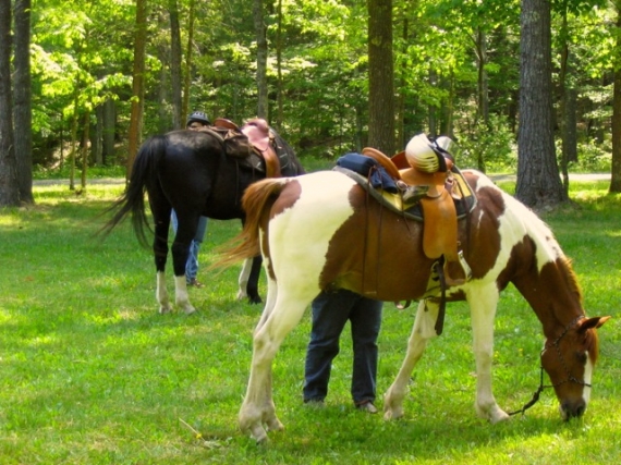 The Blue Ridge mountains are easily accessible from Galleywinter Farm, offering great views, varied terrain, and opportunities to test the foundation we build with our horses at the farm. For some, the attraction of trail riding and sleeping out under the stars is what motivates us to develop our horsemanship. To experience the peace of nature with our equine partner is a dream come true. OK, let's be realistic; sometimes it's not so peaceful. Riding out and facing challenges can sometimes push us past our comfort zone, but there are magical moments that can't be described. Being with the horses and other horse women for a chunk of time, away from cell phones, cooking on an open fire, and tucking into an old canvas bedroll .... nothing really compares to it! Experience required for this : horsemanship lessons, competency with handling horses on the ground and under saddle, and a strong connection with your horse are prerquisites for riding out in the mountains.