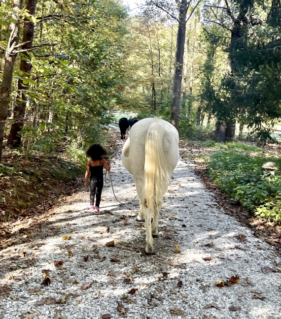 Lessons with horses are offered by appointment and tailored to your objectives. Most students are just beginning their journey with horses, some are returning to an interest in horses later in life, while others already own a horse and want to improve their skills. With older clients who foresee riding into their 60s, 70s, and even 80s, safe practices are particularly important, as is fitness. Students are guided through the basics of being with horses on the ground, work at liberty, and riding. Mounted work progresses from the round pen to arena, and eventually riding out on the farm and addressing obstacles in woods and fields. Classes are kept small and form as individuals are ready to work together in a group setting.