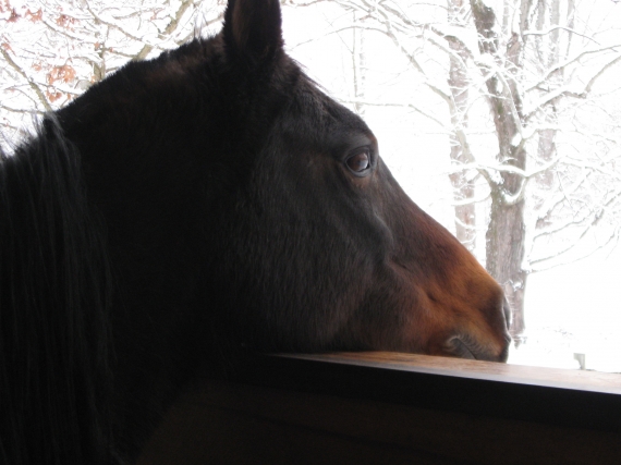 The current matriarch of Galleywinter, born in 1997, Dulci is a Bay Quarter Horse/Saddlebred cross standing 15.2 hands.  Her name comes from a fictional character in the novel Don Quixote, his true love, the most beautiful of women, Dulcinea del Toboso.  Dulci came to Galleywinter in 2005.  She demonstrates her big heartedness every day. She is our lead mare and imparts a lot of confidence to the younger horses she hangs out with. She has taught us so much about having a lot of drive and what to do with it!